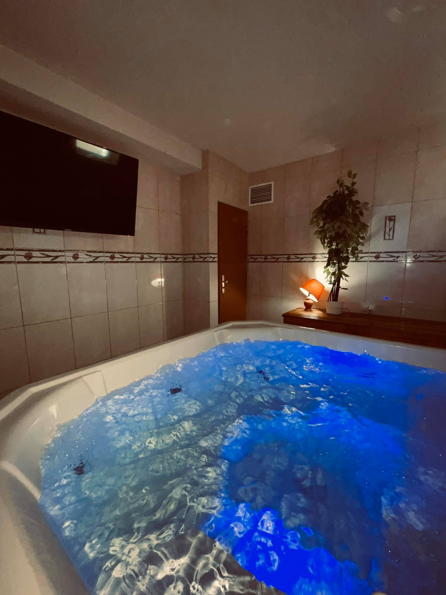 Do Państwa dyspozycji posiadamy również sześcioosobowe jacuzzi z telewizorem. Dzięki czemu można połączyć oglądanie filmu lub słuchanie muzyki z relaksem.